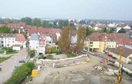 Die Aufnahme startet am Abzweig des Kraichbach an der Oberen Mühlstraße, folgt dem Verlauf bis zum Gauß-Gymnasium und wieder zurück. Der alte Kanal ist da noch sichtbar und alles sieht noch ziemlich trostlos aus.