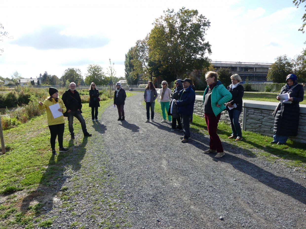 Sybille Heidenreich erläuterte dabei den Zuhörern, welche Veränderungen das jetzige HÖP-Gelände hinter sich hat. Von den alten Betonkanälen, die das Wasser schnell weiterleiteten und keinerlei Aufenthaltsqualität ausstrahlten, hin zu einer offenen naturnahen Flusslandschaft, die zum Verweilen einlädt und einmalige Blicke in die Natur ermöglicht.
