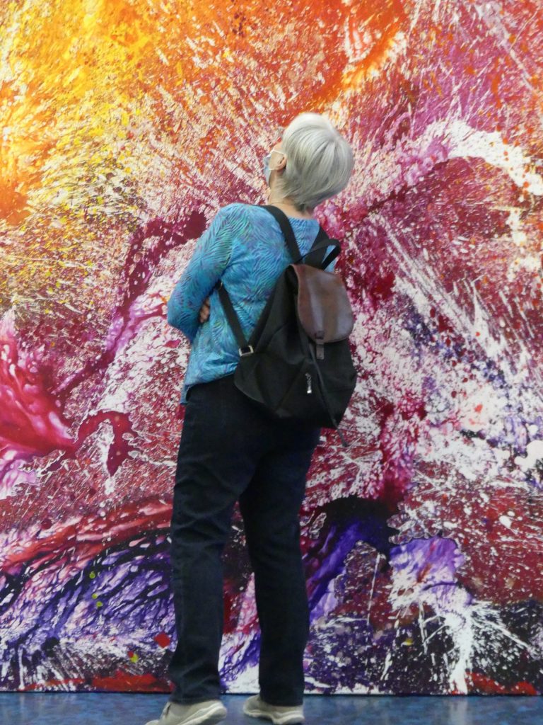 Und damit haben wir die Überleitung zum Kraichbach. Auch das war ein Betonkanal, wenn auch in Würde und Schönheit gealtert, und ist nun ein lebendiges Fließen, „eau de vie“ in all seiner Vielfalt und Kreativität. Dabei ist uns eine weitere Parallele mit der Kunst ein besonderes Anliegen: Wer den Workshop mit dem Künstler Christian Awe mitgemacht hat oder sich vielleicht nur vorstellt und hineinfühlt, wie solche Bilder entstehen können, wird etwas Wesentliche bemerken: eine gewisse meditative Grundhaltung ist hilfreich, ein Gehen- und Fließenlassen als mentale Dimension, Gelassenheit und Selbstvergessenheit; abrupte Eingriffe dagegen werden eher hinderlich sein. Und so ist es ganz wichtig, auch dem neuen Kraichbach mit seiner wunderschönen landschaftlichen Umgebung Respekt entgegenzubringen, dem Wasser und den pflanzlichen und tierischen Bewohnern und Anwohnern Raum zur Entfaltung zu lassen – und eben eher in Ruhe zu beobachten, was sich dort tut, als hineinzuspringen.